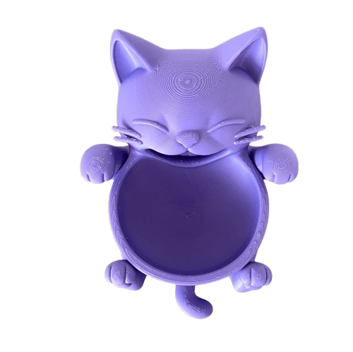 Conoce al compañero más alegre que tus plantas o tus llaves podrían desear! Este adorable y divertido gato en color lavanda está muerto de la risa, ¡y tiene el sitio perfecto para guardar tus tesoros!